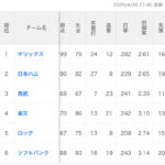 お便りを読まずに食べた、なんて冗談はさておきまして、まずは現状のおさらい、ということで現在のパ・リーグの順位及びデータを見てみましょう。